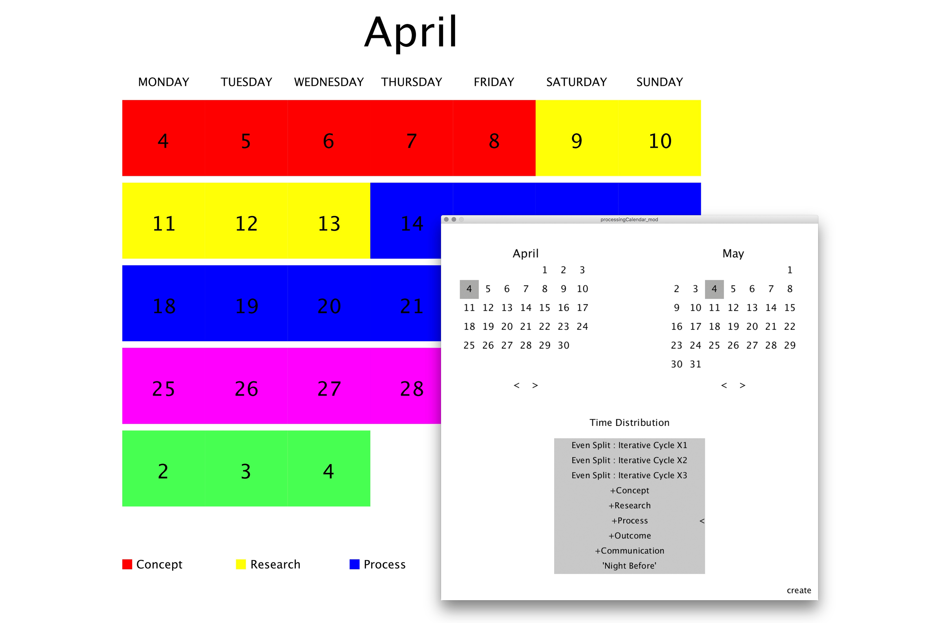 A simple activity scheduler to designate time remaning until the project deadline into categories on the course marking criteria. Students can choose a plan that weights days more heavily in areas that they struggle with or enjoy.