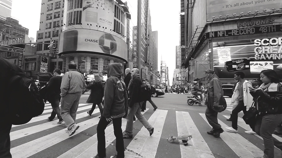 During the early stages of the project we experimented with diverse ways of navigating and experiencing the city. The Colour Navigator app displays a solid colour which is the average of all the colour data from each video frame of the phone camera. When worn in a headset this reduces your vision to an aggregate view of your environment.